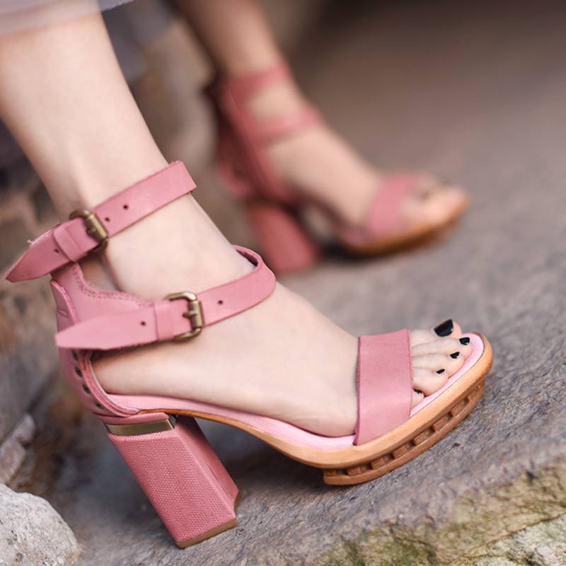 夏季新款原创欧美风甜美真皮罗马凉鞋粗高跟皮带扣英伦风女鞋
