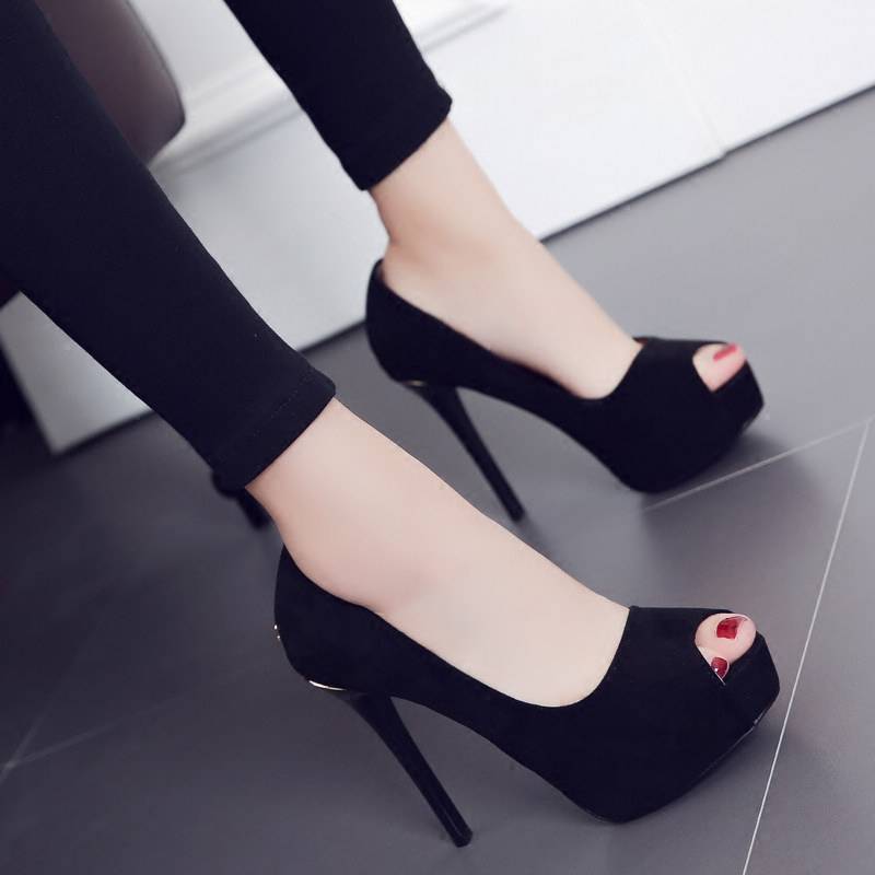 2018春季新款防水台鱼嘴细跟高跟鞋OL工作鞋女式夏季绒面单鞋女鞋