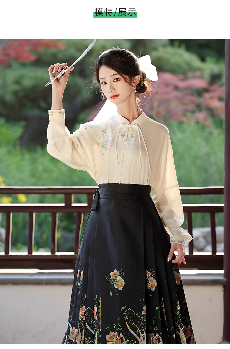 女士汉服裙明制汉服花鹊枝重工云肩立领大袖衫马面裙套装春秋季款