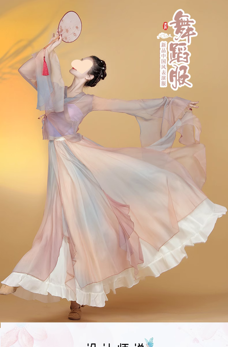 新款古典舞舞蹈演出服纱衣渐变色飘逸汉唐练功中国剧目套装艺考