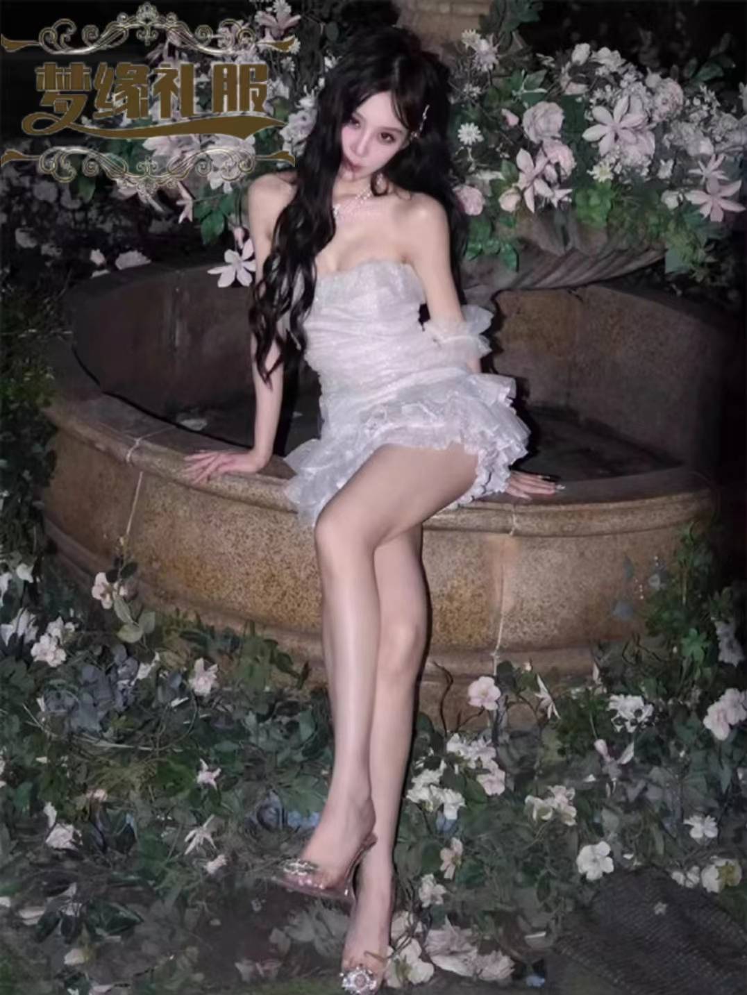 你的“梦中礼服”法式约会2024新款少女抹胸蕾丝礼服裙