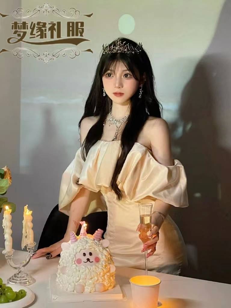 你的“梦中礼服”法式2024新款少女泡泡袖抹胸丝绸礼服裙
