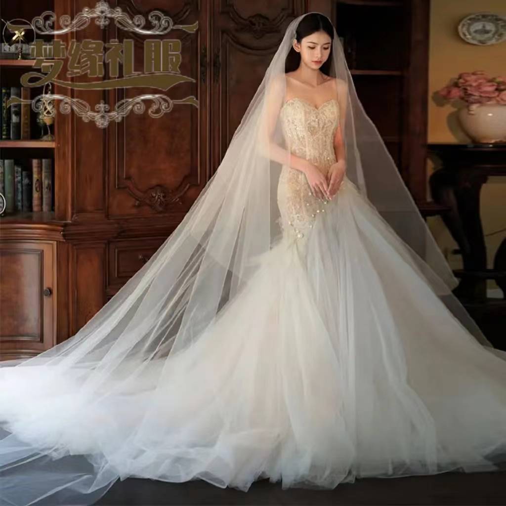 你的“梦中礼服”法式轻婚纱2024新款新娘鱼尾抹胸蕾丝礼服裙