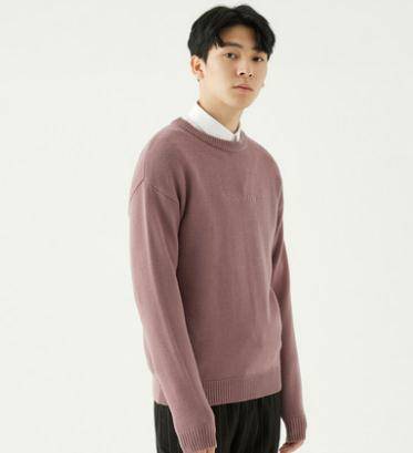 秋季新款韩版刺绣套头针织衫粉紫圆领保暖羊毛衫毛衣