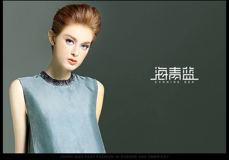 海青蓝2018夏季新款女装时尚无袖复古风真丝舒适宽松连衣裙00952