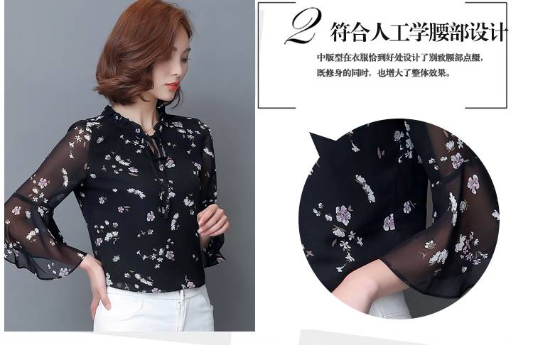 雪纺衫女短袖夏装2018新款碎花甜美宽松遮肚子超仙雪纺上衣洋气潮