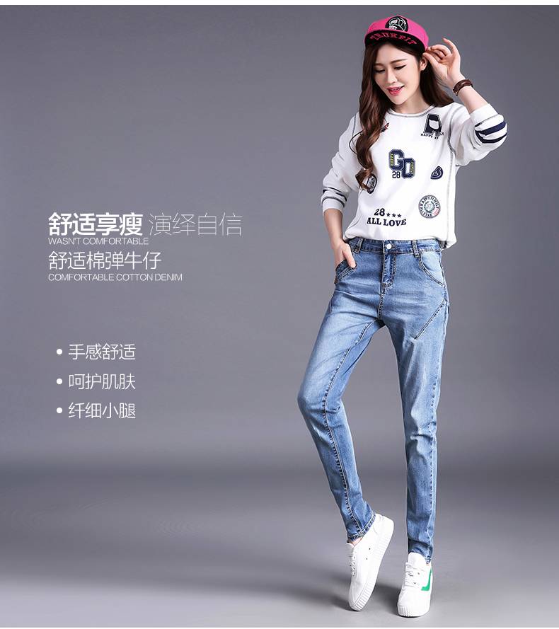 高腰牛仔裤女夏宽松长裤春秋2018新款薄款韩版直筒显瘦百搭哈伦裤