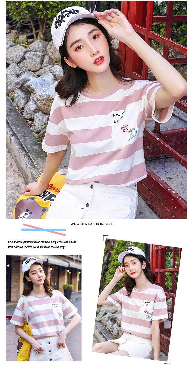 短袖t恤女夏装2018新款宽松韩版学生条纹半袖夏季女装上衣