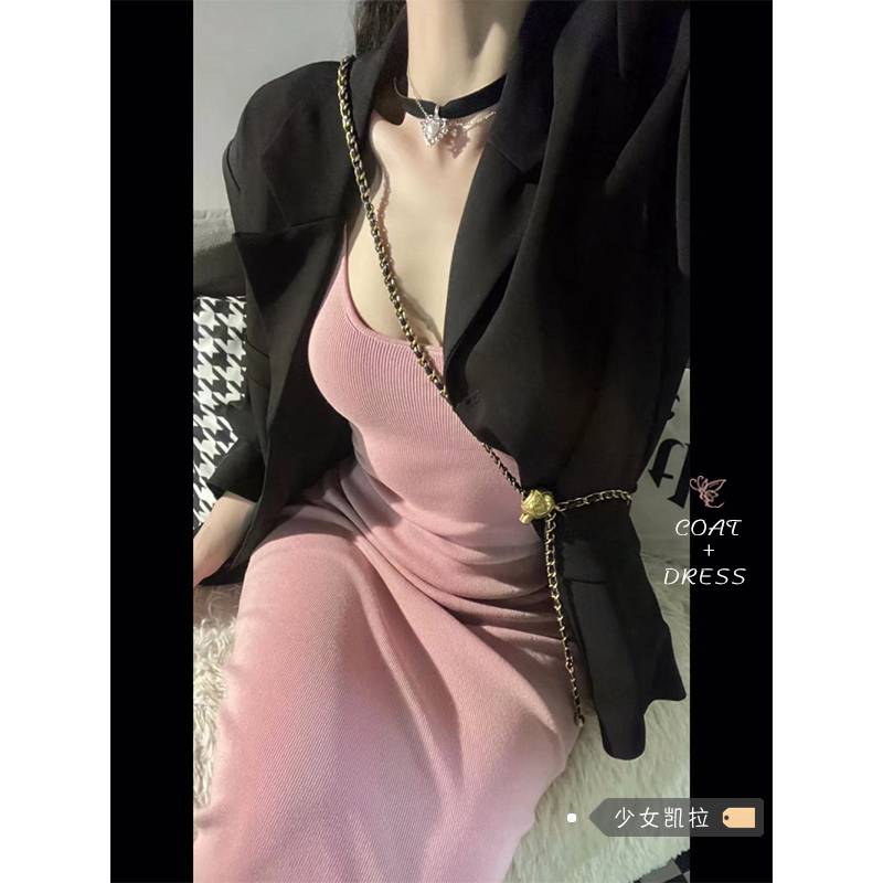 轻熟风无袖针织背心连衣裙女初秋新款收腰吊带裙包臀裙中长款裙子