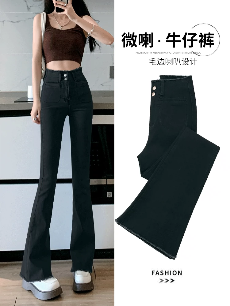 高腰微喇牛仔裤女2022新款爆款春秋冬季修身显瘦百搭黑色喇叭裤子
