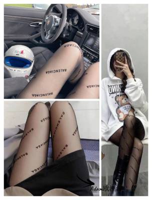 Balenciaga/巴黎世家 黑色丝袜字母刺绣显瘦性感塑形打底连体袜女