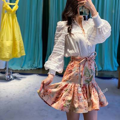 包邮zimmermann澳洲代购半身短裙高腰夏季花色可爱jk百褶碎花a字