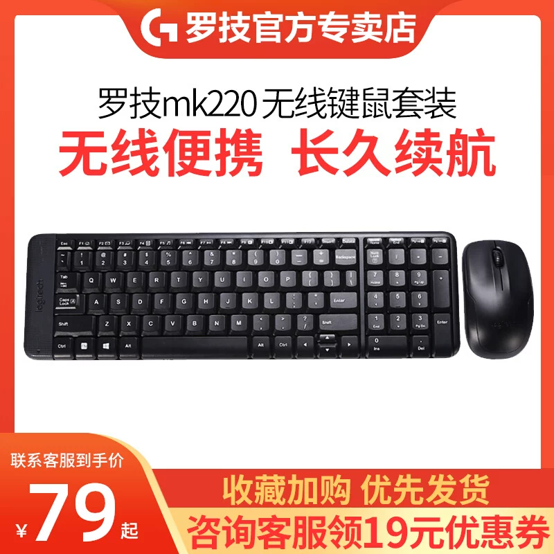官方旗舰罗技MK220无线键盘鼠标套装打字办公便携紧凑键鼠套装