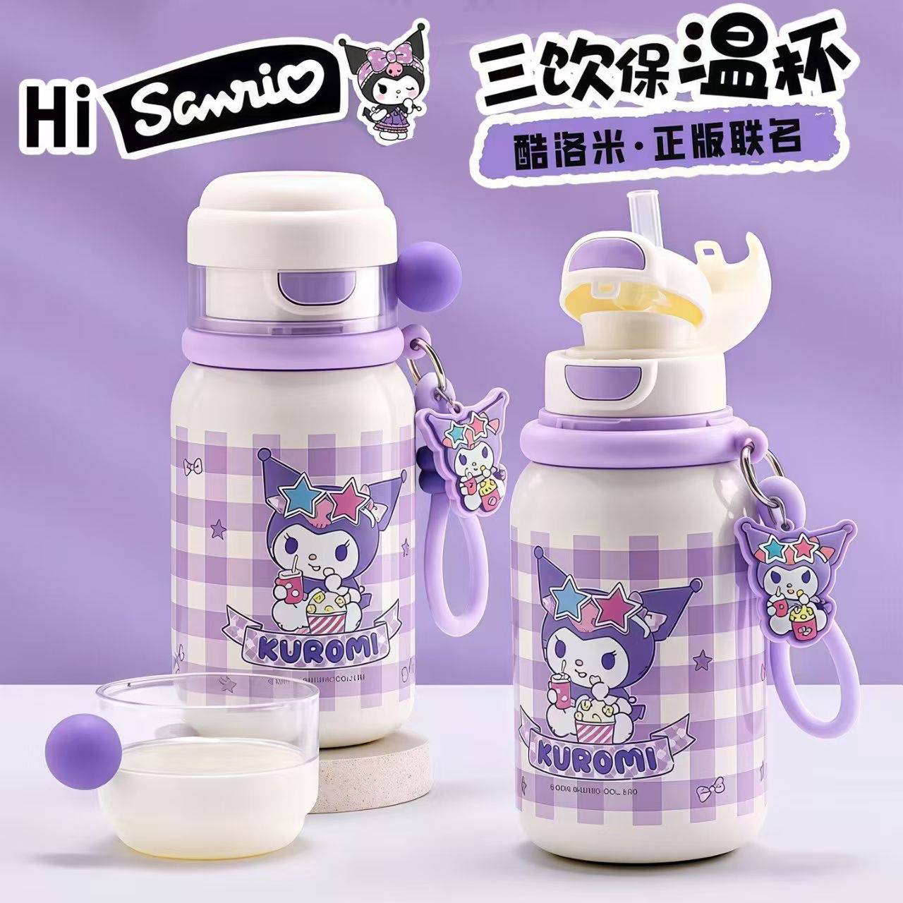 三丽鸥保温杯女生儿童学生有盖喝水壶吸嘴吸管不锈钢可爱款