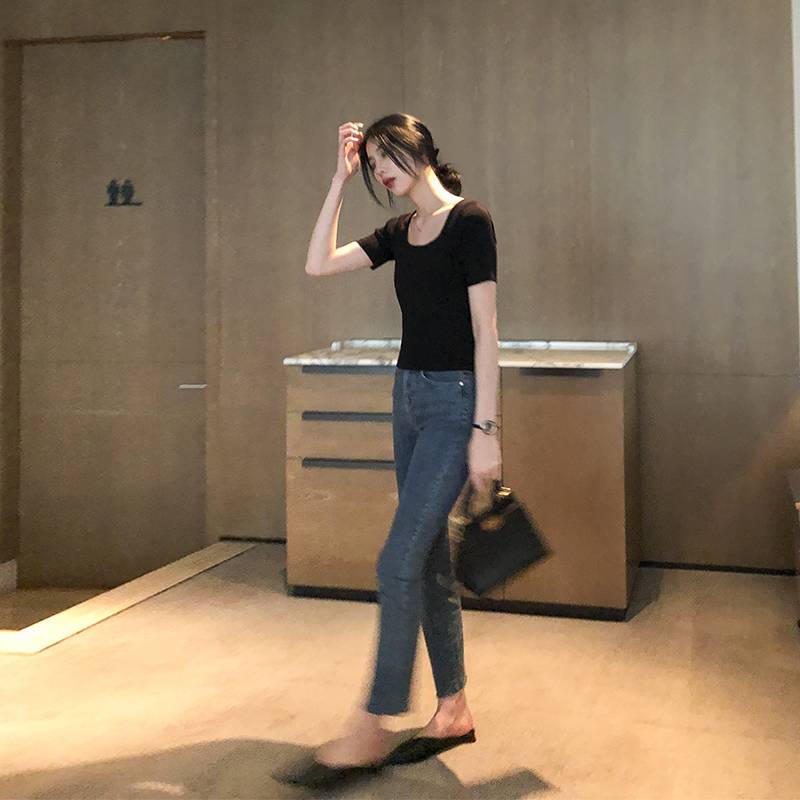 2019春装新款高腰chic裤子牛仔裤显瘦学生铅笔长裤紧身小脚裤女装