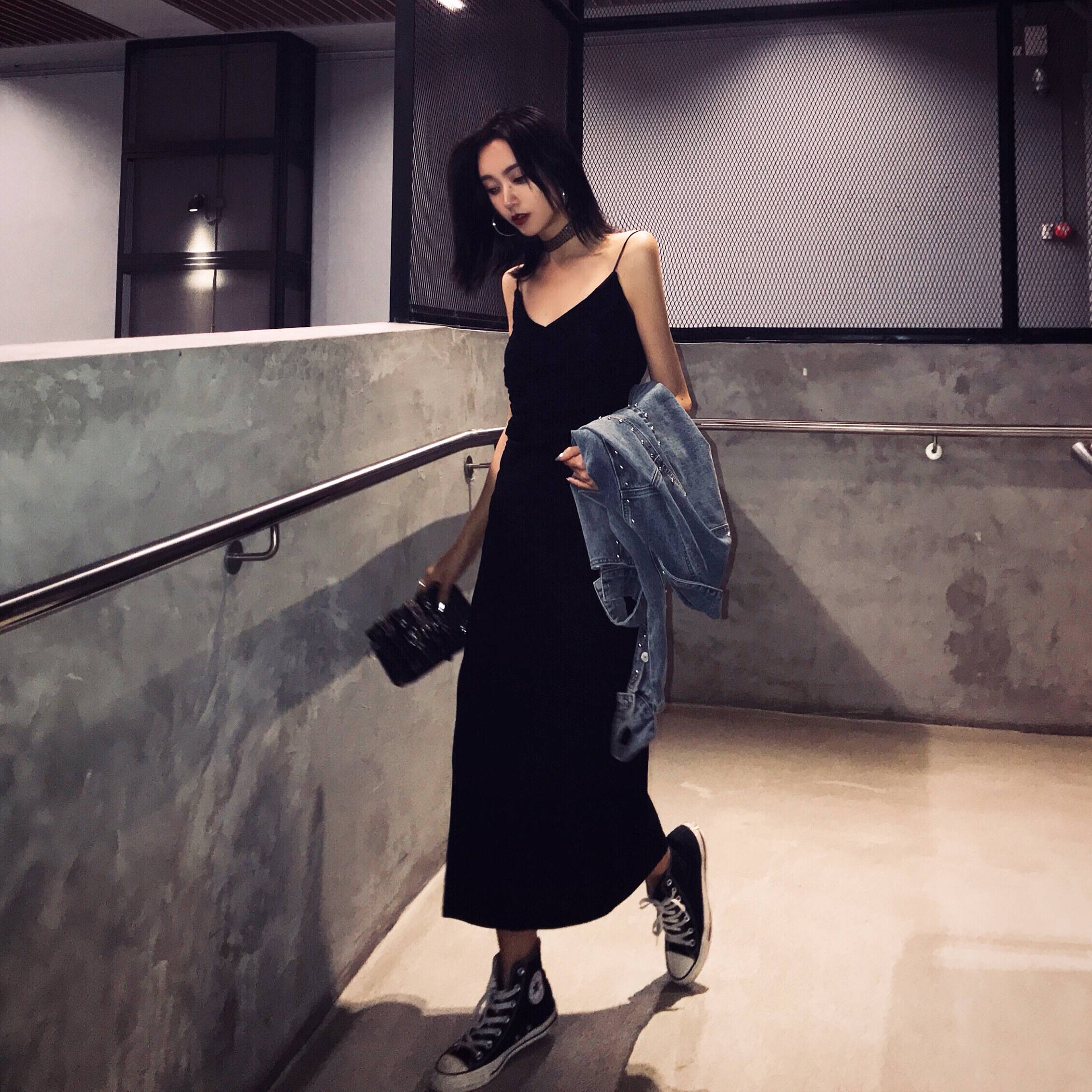 丽哥潮牌裙子夏2019新款蛇纹抹胸牛仔裙女收腰泫雅性感吊带连衣裙