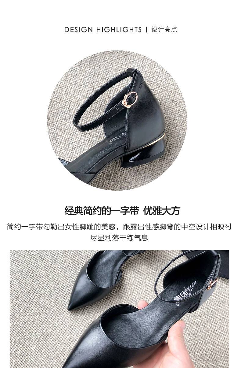 2019新款夏季仙女尖头一字带中空平跟小CK女鞋包头百搭平底凉鞋女