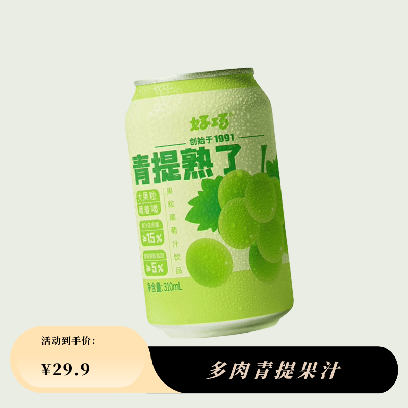 好巧青提熟了310ml*6葡萄果肉果粒果汁饮料葡萄汁口味灌装饮品