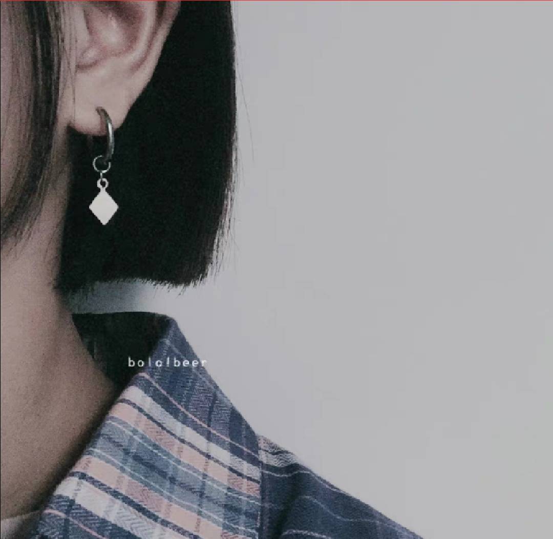 港风街头简约个性港风金属感方片未来感嘻哈学生耳钉酷男女款包邮