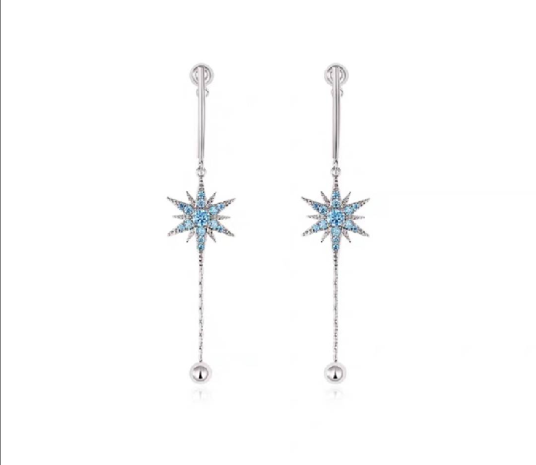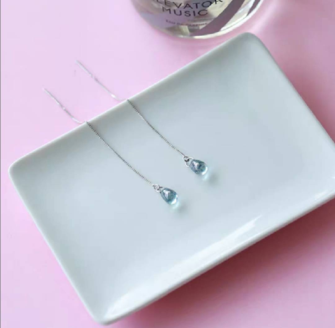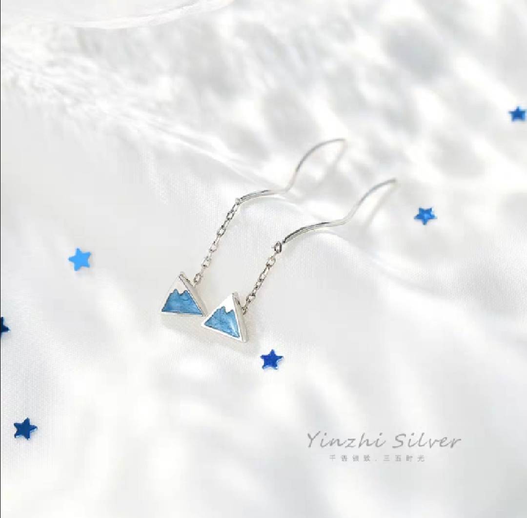 S925纯银耳线女 韩国气质简约森系蓝色水滴耳线长款流苏个性礼物