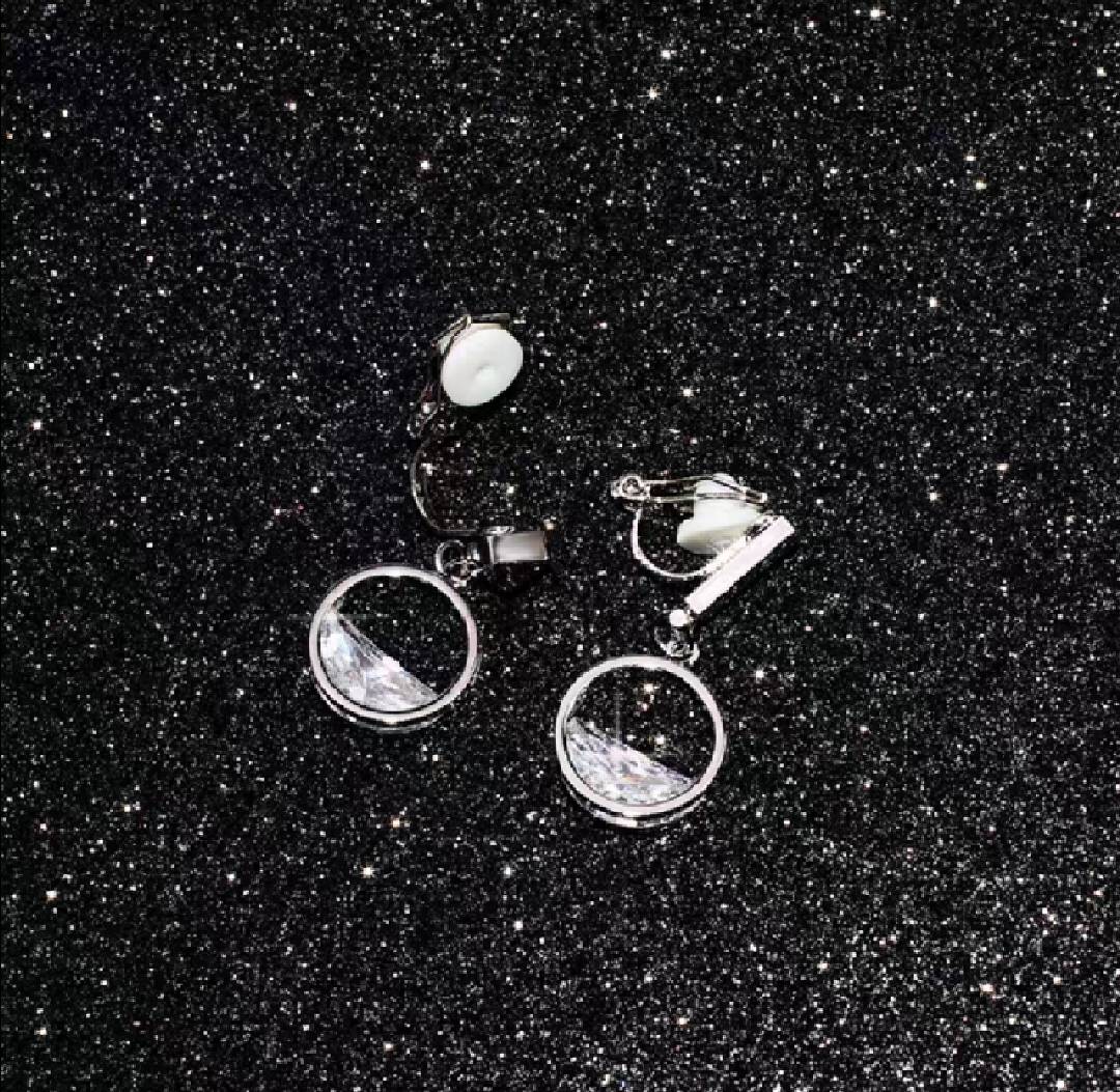 一汪清泉925银针不对称闪锆几何无耳洞耳夹无洞耳环饰品女0265
