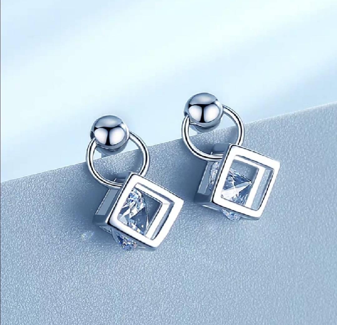 925纯银会动的耳钉女简约超仙精致短款耳环正方形小方糖耳饰耳坠