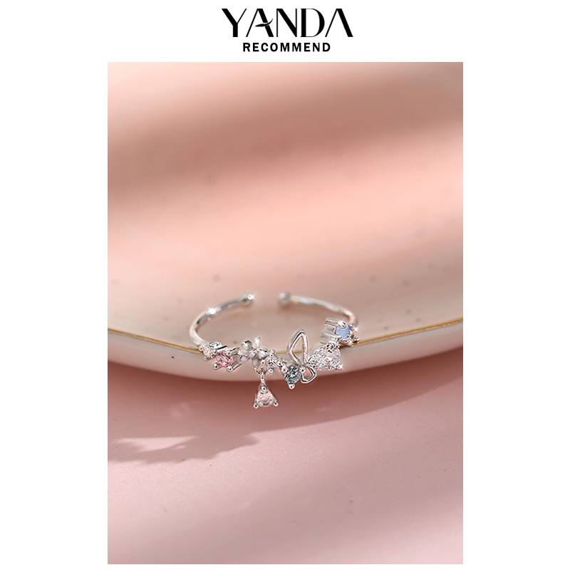 艳925银炟设计感戒指银纯银指环 小清新浪漫轻奢食指戒开口可调节