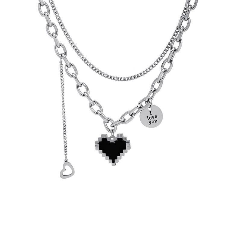 钛钢轻奢黑色爱心吊坠项链批发辣妹高级感小众设计毛衣链个性项饰