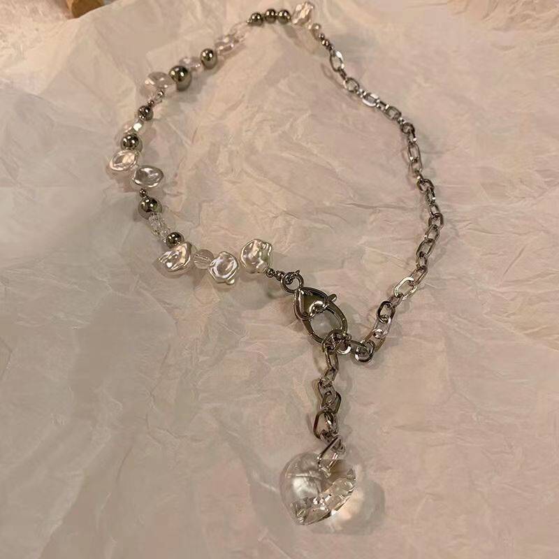 甜酷辣妹纯欲爱心拼接珍珠项链女小众轻奢高级感2022年新款颈链