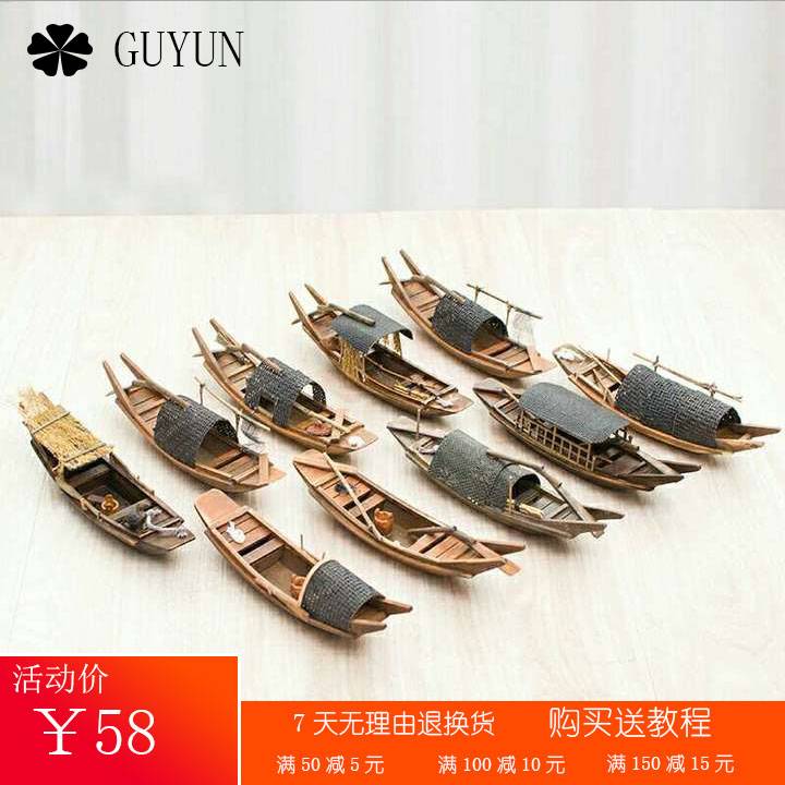 古韵世家帆船装饰品迷你小船模型手工木制小船模型船模渔船