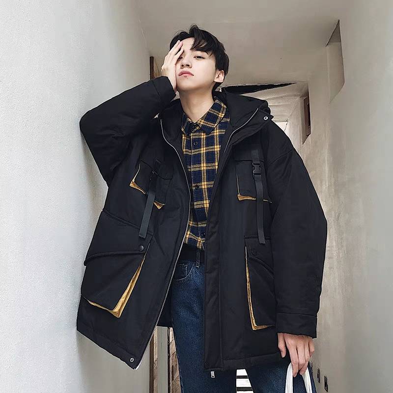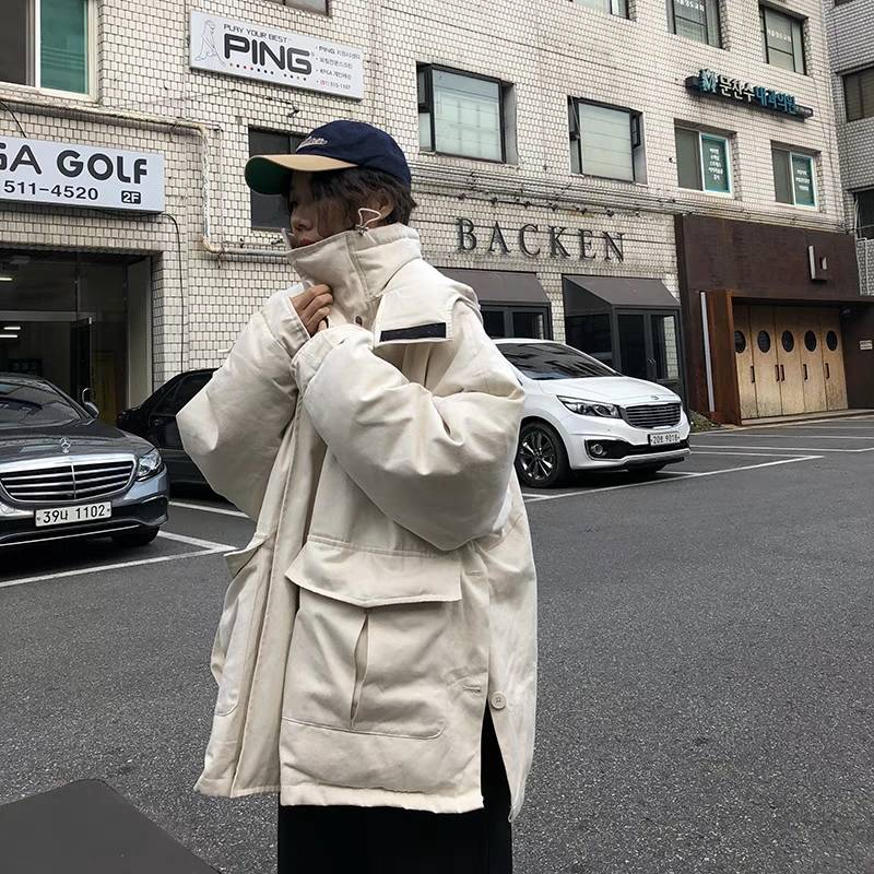 零度装韩风工装高领宽松加厚棉服外套大口袋学生连帽面包服