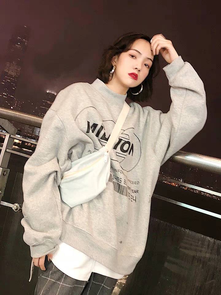 零度女装港风加绒加厚休闲宽松纯色潮服半高领百搭卫衣女