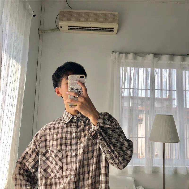 零度秋装长袖衬衫宽松格子磨毛日系复古百搭学生潮流情侣外套