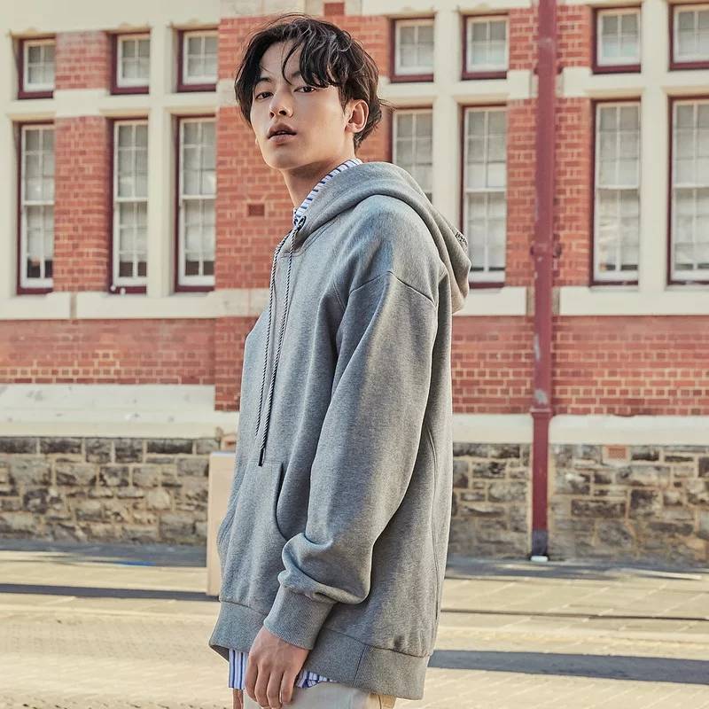 零度港风加绒加厚休闲宽松国潮服半高领百搭纯色连帽卫衣男