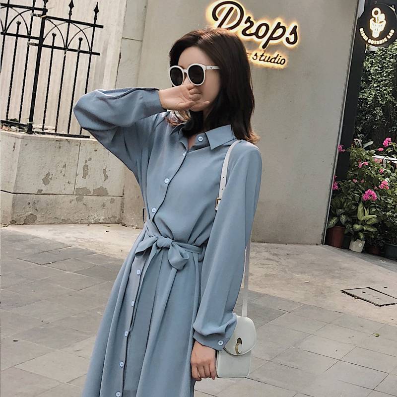 秋装女2018新款连衣裙女夏中长款气质衬衫裙秋季长袖长裙港味裙子包邮