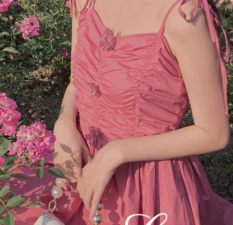 法式复古方领蝴蝶连衣裙高腰显瘦纯色V领吊带裙女夏2020
