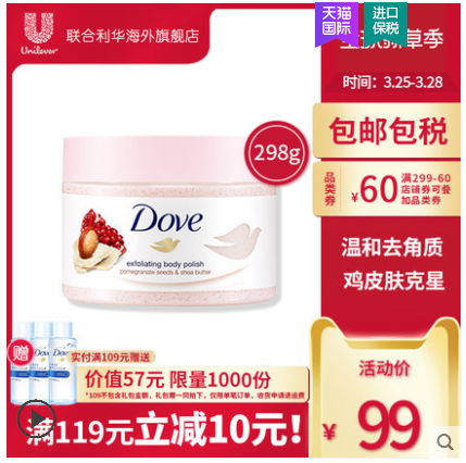 多芬石榴籽和乳木果风味冰激凌身体磨砂膏298g去角质鸡皮