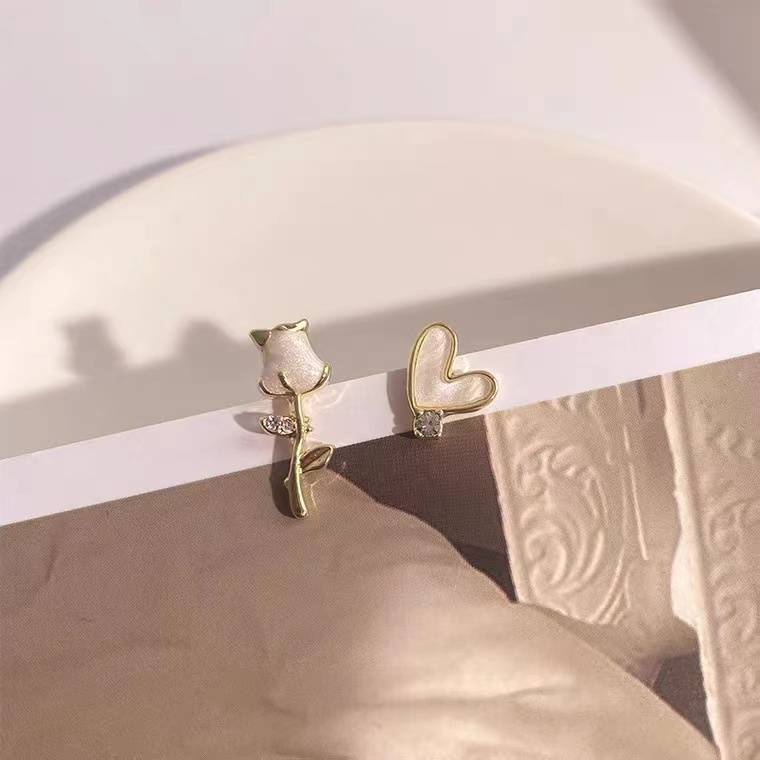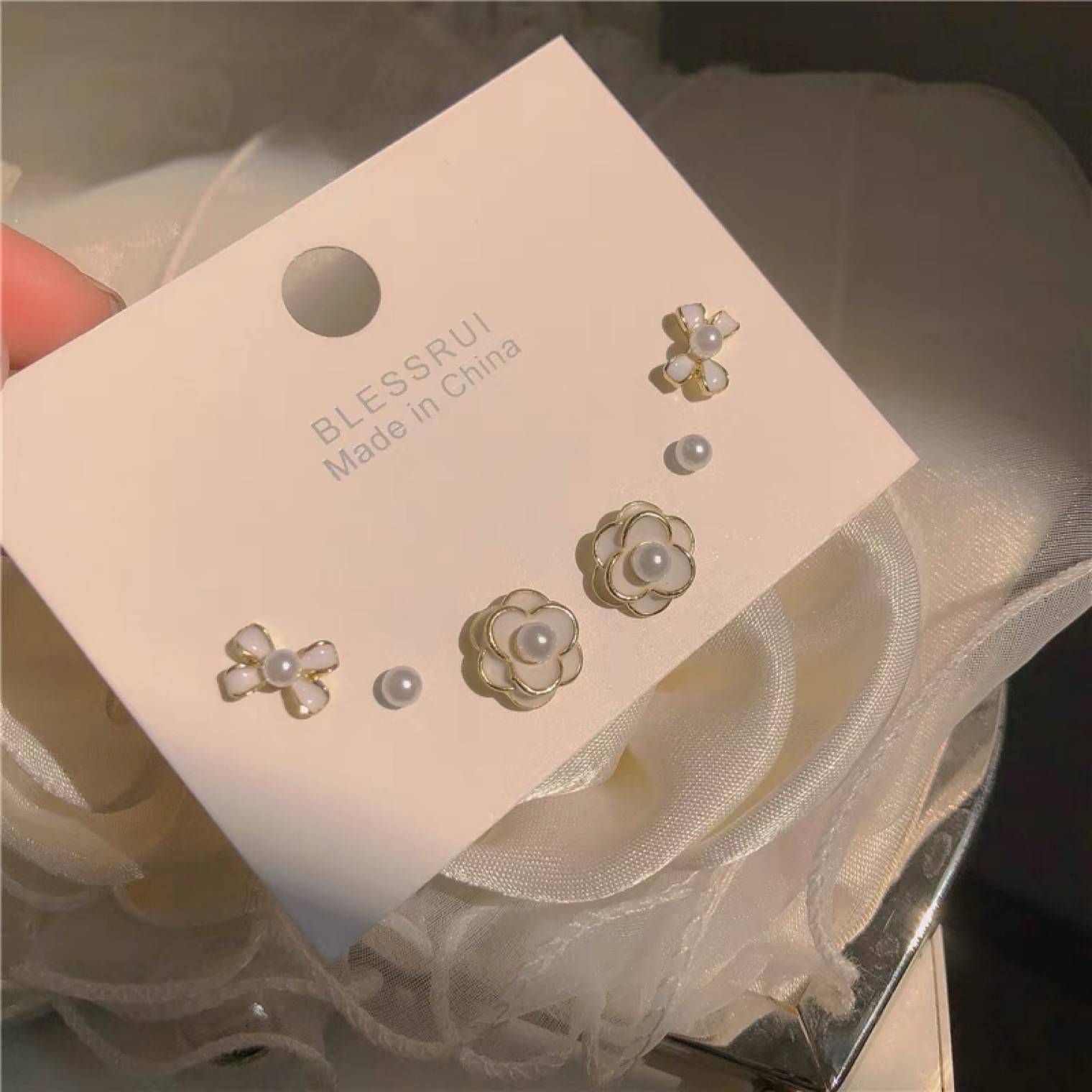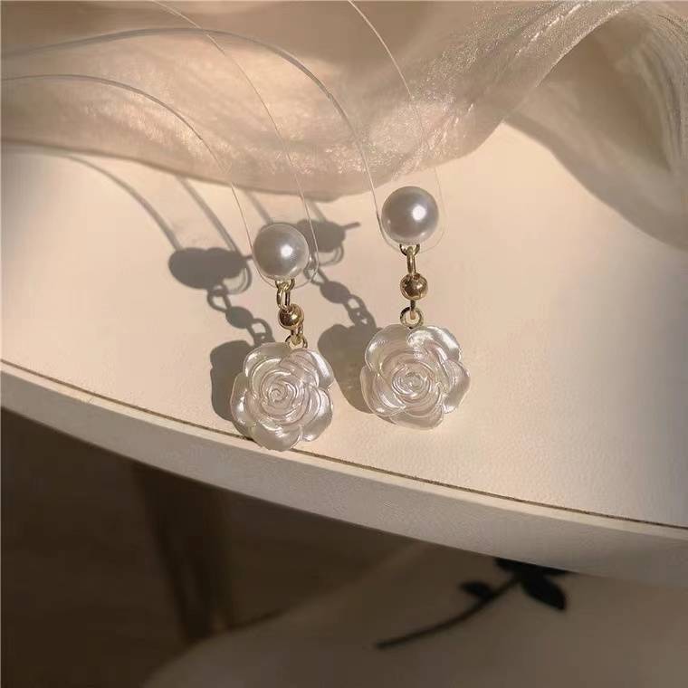 超仙小山茶花耳钉珠光白色玫瑰花珍珠耳环女气质初春新款耳夹潮