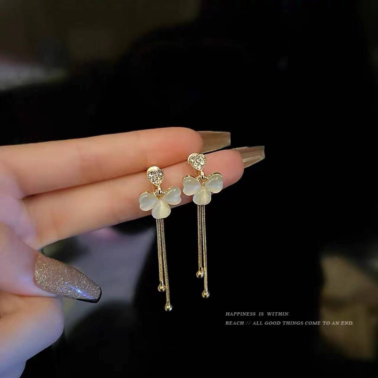 精致猫眼石流苏耳环女夏2022年新款潮高级轻奢耳钉小众设计感耳饰