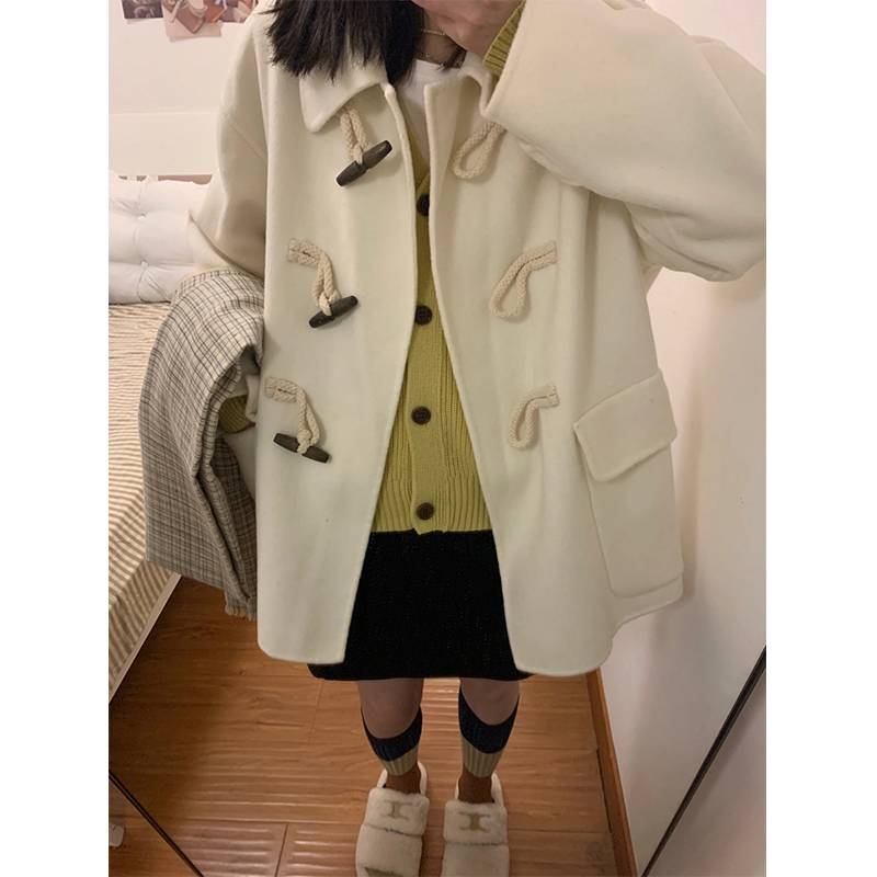 牛角扣双面羊绒大衣女秋冬季2021年新款小个子大口袋绵羊毛呢外套