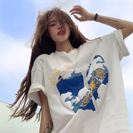 纯棉中长款短袖T恤女装2021年新款潮桖 夏设计感薄款 大码宽松体桖欧货大版t桖