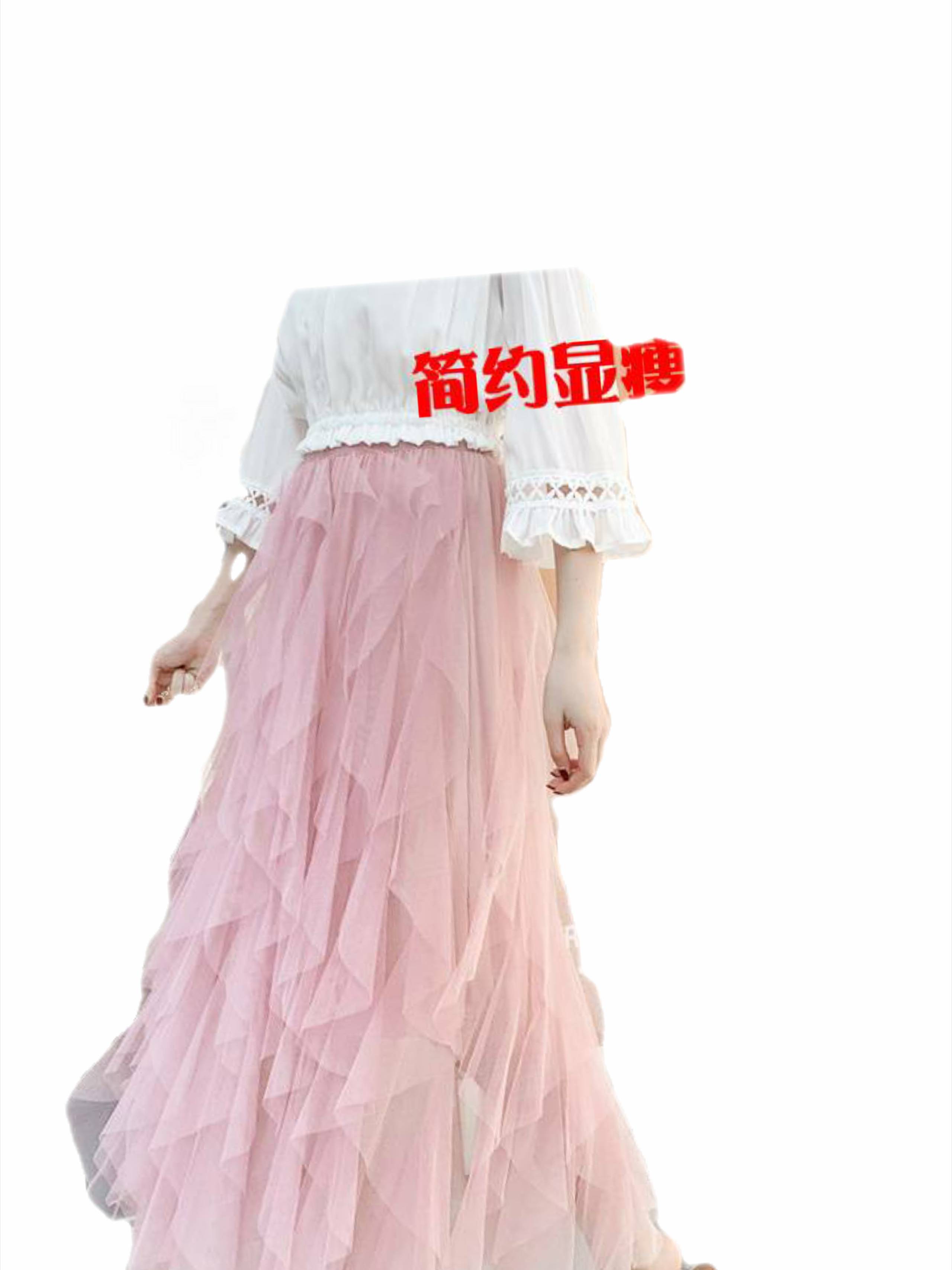 2020春夏新款韩版网纱半身裙中长款裙子女百褶裙纱裙长裙
