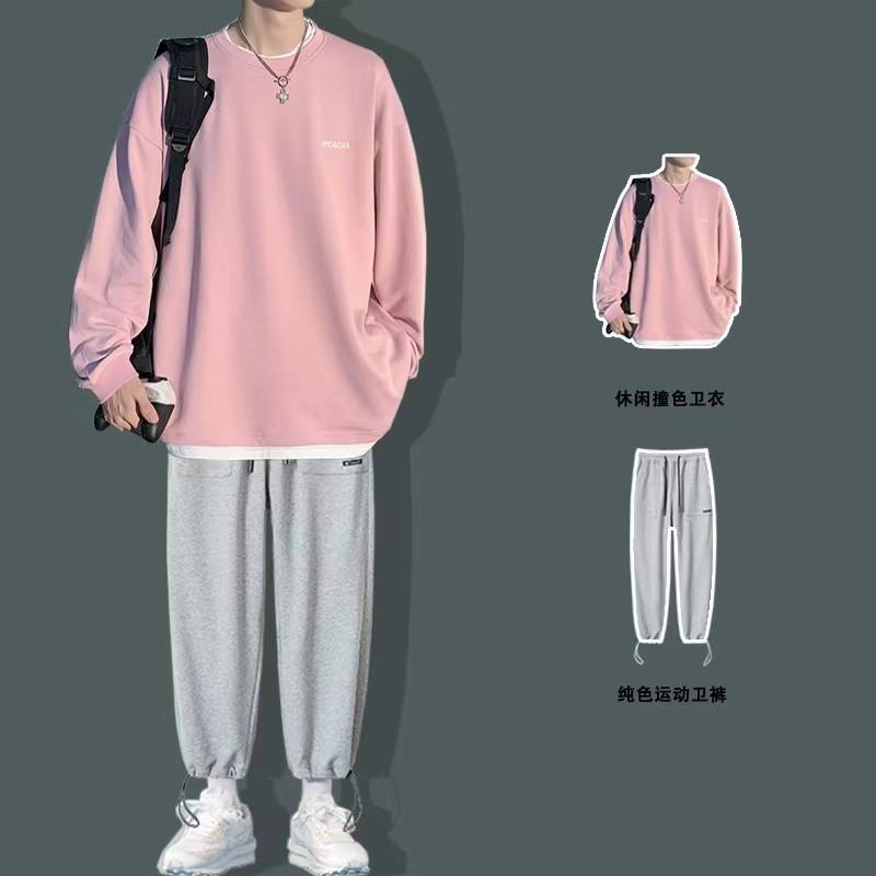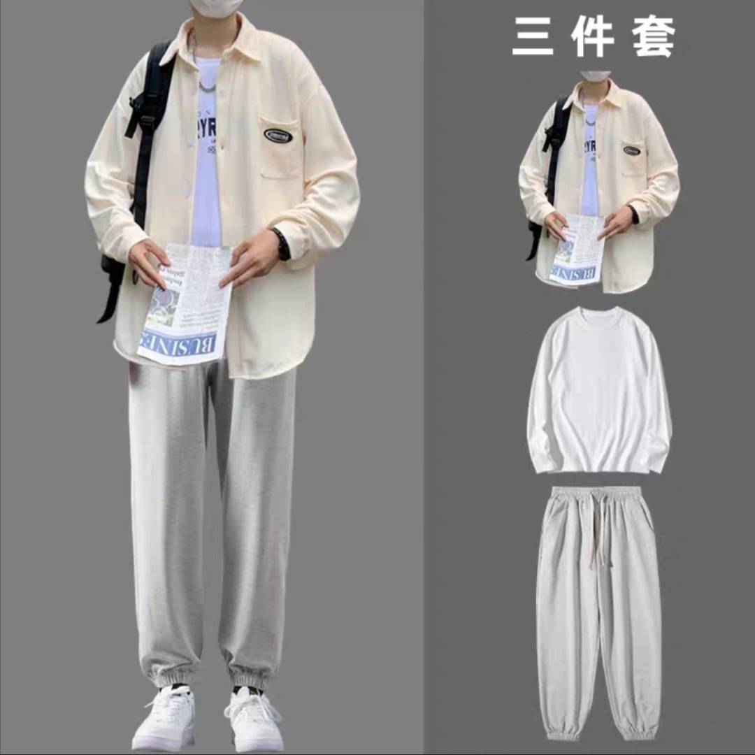 长袖衬衫男士春秋季港风男装套装潮流一套搭配轻熟风三件套
