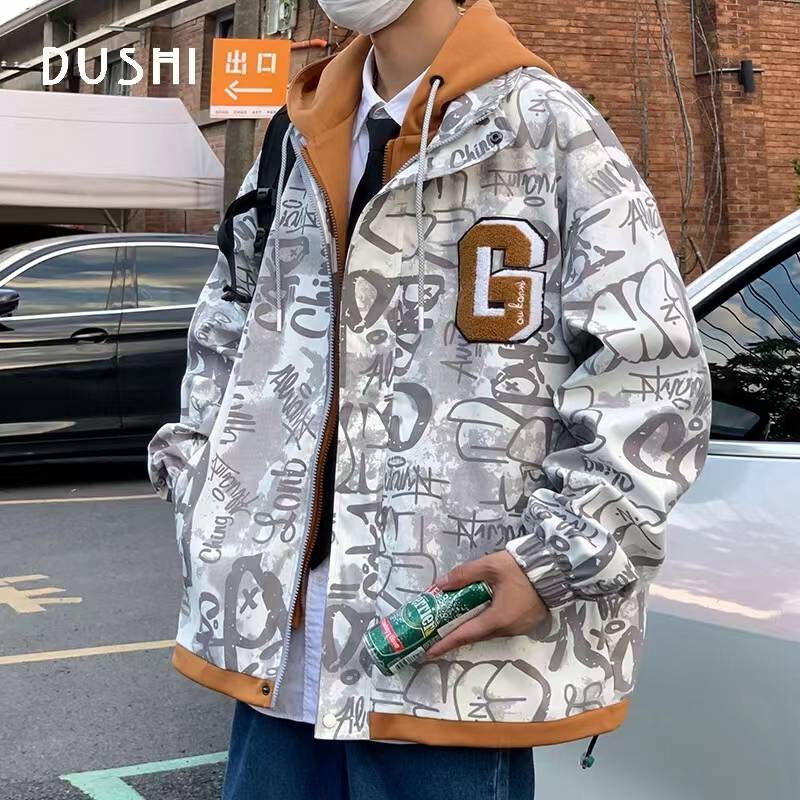 港风外套男潮流秋冬季加绒加厚夹棉潮牌青少年宽松休闲连帽夹克男