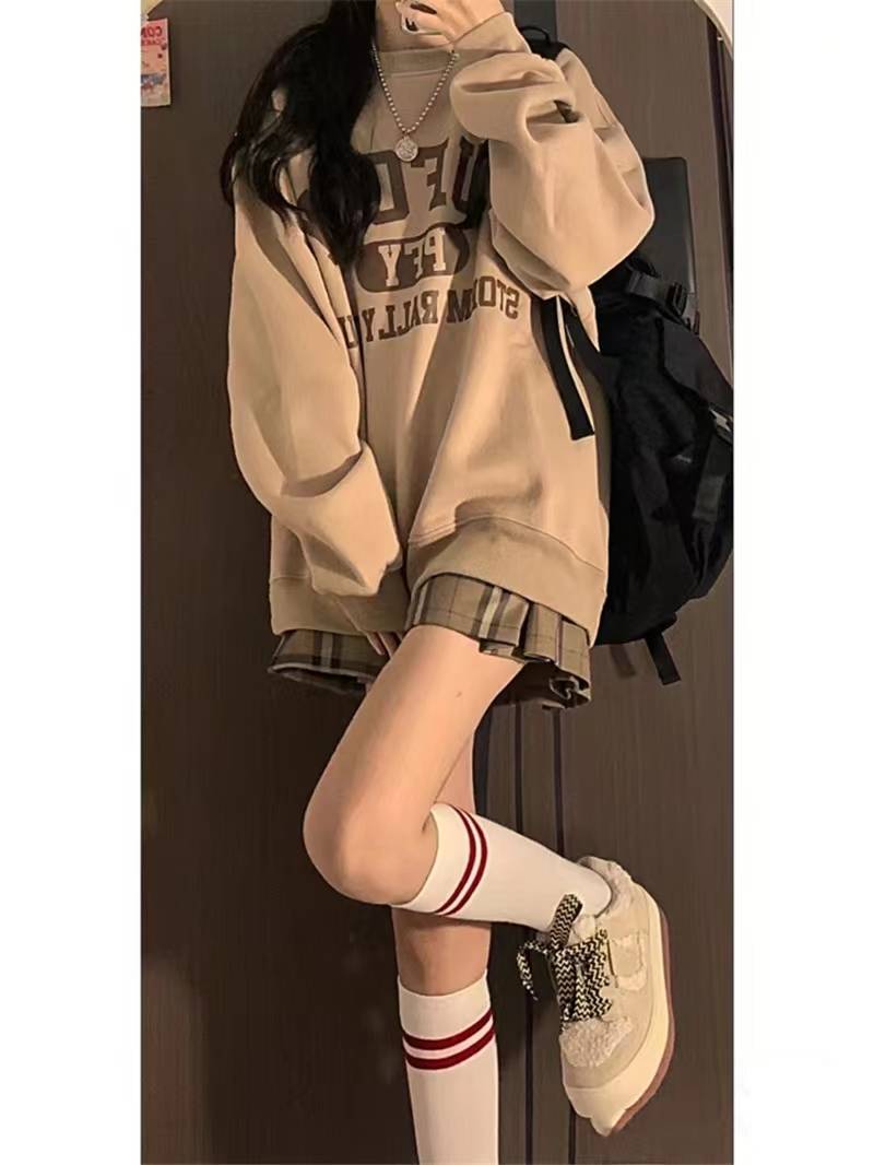 秋冬盐系穿搭炸街网红时尚洋气减龄韩系学院风卫衣半身裙两件套装