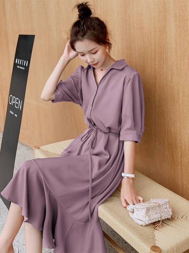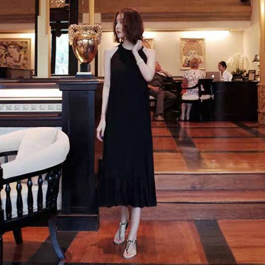 心机裙子设计感超仙女冷淡风赫本小黑裙极简主义鱼尾连衣裙2019夏