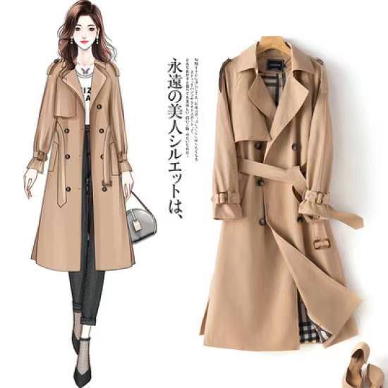 娟衣衣橱大庙2022年新款纯棉英伦质纯色长袖双排扣女士风衣外套