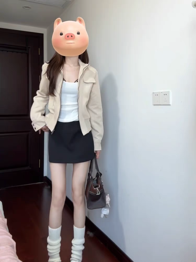卡其色短款麂皮外套女2025春季新款美式复古机车夹克上衣休闲百搭