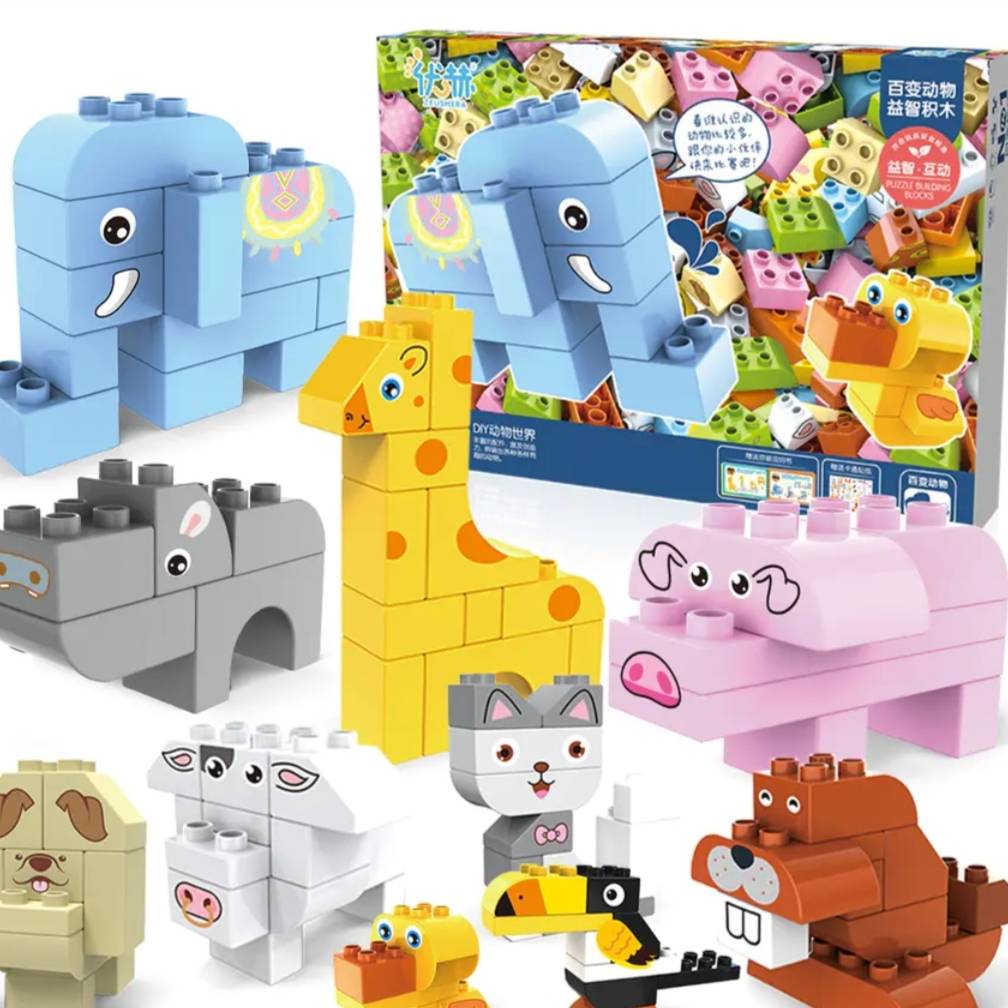 【致砖新品】动物世界积木拼装玩具益智力儿童小男孩颗粒3岁以上
