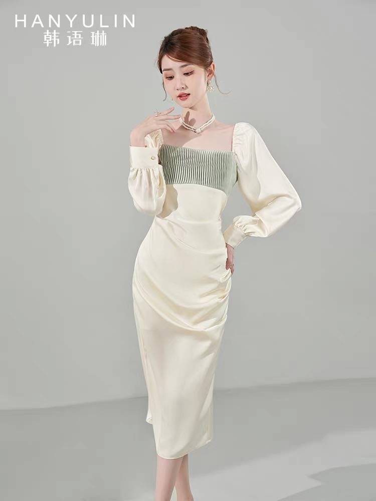 法式复古长袖连衣裙新款早秋韩国黑裙宽松女装